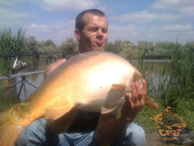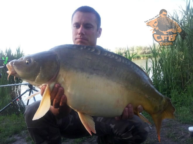 Nem is kellett neki sem sokat várni, hamarosan sikított a jelző, dolgozott a Manta Evo X bot, és szaladtak le az Ultegra dobjáról a méterek. Ahogy telt az idő egyre szebb halak jöttek, de sajnos többször csónakázni kellett, szerelék szabadítás céljából, és párszor a halért is csónakba kellett ugrani, mert sikerült neki némely akadón, zsinóron összetekerni magát, ezt a partról képtelenség volt kezelni. A csalikat folyamatosan változtattuk és szinte minden órában több hal is jelezte, hogy vevő a CFB RedArmy és Monsterfish valamint Karesz bojliaira.