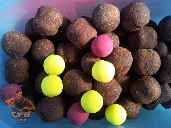 A parttól 100-150-180m-es távolságban több kisebb törést, púpot találtunk és több helyen váltotta az egyébként 10-15cm-es iszap réteget egy-egy négyzetméternyi keményebb terület. Ezeket átpásztázva 4 bóját helyeztünk el , kettőt 170-180m-es távolságban 2m-es vízben, egyet 1.6m-es, egyet pedig 1m-es vízben. A bójákra magmixet és bojlit valamint hallibut pelletet szórtunk viszonylagosan ésszerű mennyiségben. Miután ezzel végeztünk és a podok, botok, szerelékek is bevethetővé váltak, következett a csalizás. Első körben a CFB RedArmy és Mosterfish golyói kerültek fel hóember formában egy-egy ananászos és crab ízű könnyítéssel.