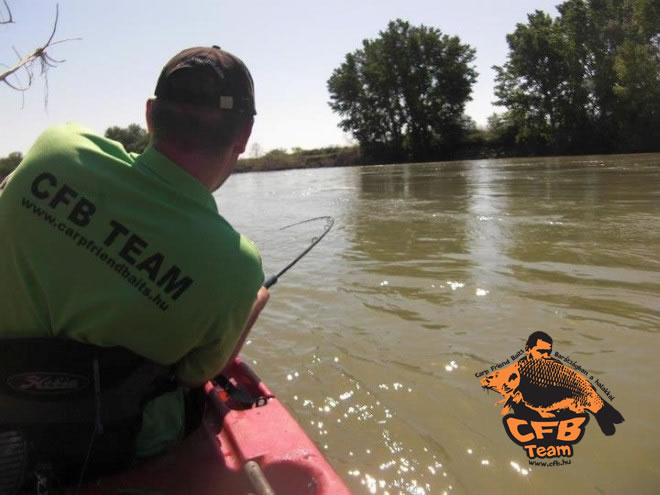 A nap folyamán további kapásunk nem volt sem a pontyos, sem a harcsás botjainkon. Látva a tározó magas vízállását megállapíthattuk, amennyiben továbbra sem változik a helyzet, harcsa fogására elég csekély az esélyünk. Ezért Krisztián tanácsát kértük, mit javasol ebben a helyzetben. Említette, hogy van egy barátja, aki az élő folyón szervez pergető túrákat kajakból. Egyből átvillant az agyamon, mekkora élmény lehet pergető módszerrel akasztani egy kapitális harcsát, majd azt kajakból fárasztani. Nem gondolkodtunk egy percig sem, vágjunk bele! Másnap reggel kb. 50 km-nyi utazást követően 9 óra környékén megérkeztünk a folyóhoz, ahol Roberto túravezető már várt minket. Röviden ismertette, hogyan kell hajtani, illetve irányítani a hajót, hiszen nem egy hétköznapi kajak volt, speciálisan pergető horgászathoz lett kifejlesztve. Evező helyett például pedállal hajtottuk a csónakot, a kormányzása pedig egy kar segítségével történt.