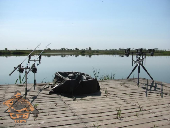 4 bója lehelyezése után beetettünk a bóják mellé. Ezután kezdődhetett a botok felszerelése és fel csalizása.