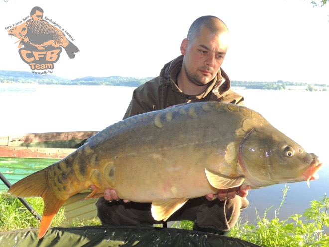A villámok nappali világosságot hoztak a korom sötét éjszakába. Lassan elvonult a vihar, elállt az eső, a szél sem fújt már. A szerelékeket így már biztonságban vissza tudtuk húzni a bójához. Hajnalban egy folyamatos egyenletes húzós kapás ébresztett. A Carp Friens Baits Red Army mixéből készített dupla 20 mm-es csalit kívánta meg valaki. Ahogy megemeltem a botot és felvette a kontaktust a megakasztott hallal, már az első pillanatban éreztem, hogy egy szebb példánnyal van dolgom. Rajtam kívül nem kelt fel senki a kapásra, mivel a kapásjelzőimen a hangerőt minimumra szoktam állítani. Csak a vevő jelzi rezgéssel és persze villogással a kapásokat. Beszálltam a csónakba -amiben mindig van egy merítő, és egy pontymatrac- és egyedül kezdtem meg a "harcot". Pár perc alatt már a hal fölött voltam. Nagyon erősen tartotta magát. Még kellett kb. 10 perc mire megpillanthattam, persze csak egy pillanatra, mert egy erőteljes kirohanással újra a víz méllyén volt. A folyamatos terhelésnek köszönhetően egyre jobban kezdett fogyni az ereje, és sikerült végre felhúzni a víz felszínére. Egy gyors mozdulattal már bent is volt a gyönyörű pontya az ideiglenes börtönében. Beemeltem a csónakba és szépen óvatosan a matracra tettem. Elindultam vele a part felé. Nagyon örültem, mert néhány ismerősöm állításával ellentétben sikerült erről a horgászhelyről egy 10 kg feletti pontyot fognom.