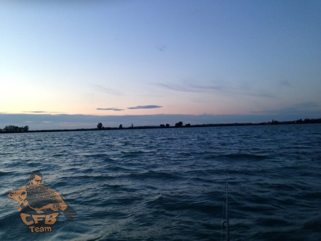 Gyors kipakolás után a csónakot kezdtük felszerelni, hogy elkezdjük a helykeresést. Több órát vett igénybe mire mind a hét bolya a helyére került és elkezdtük a botok elhelyezését. Elsőként nekem a legtávolabbi botomra esett a választás, a bolyához érkezést követően etetés következett ami főzött kukorica, pellet és félbevágott 20mm C.F.B. Monsterfish volt. Leengedtem a szerelékemet a kiszemelt törés oldalára és irány a part.