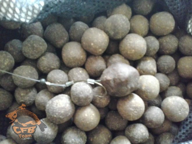 Ahogy besötétedett elállt az eső, így el tudtam kezdeni végre a horgászatot. Csalinak Red Army-t, Drakula-t és Full Livert hoztam, a bojlikon kívül hoztam még magmixet is mely tartalmazott tigrismogyorót, kukoricát, kölest, csemegekukoricát, csicseriborsót, kendermagot és búzát. Az etetést a tó közepén alakítottam ki kb. 3-4kg magmixet és kb. fél kg Red Army, Full Liver és Drakula golyót szórtam szét szőnyegszerűen elterítve a fenéken. A botok bedobása után nem sokkal megérkeztek az első kisebb pontyok, majd hajnaltájt elhallgattak a jelzők. Reggel, ahogy kivilágosodott Csoki barátom fogott egy 7-es tövest, mely gyors fotó után úszhatott is tovább, ezután megszórtam a meghorgászott helyet újabb 3-4kg magmix-el és fél kg golyóval. Az etetés után 2-3 óra kapástalanul telt el, először a Full Liver-re volt érdeklődő egy kisebb ponty személyében, majd a Red Army-t húzta el egy 9.80-as amurocska.