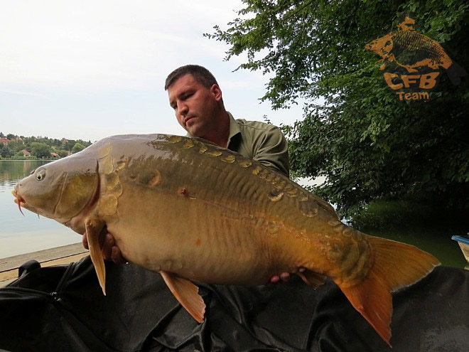 Nagy volt az öröm, de azért megjegyeztük, ha még pár percet töltött volna az etetésen akkor talán 20+ lenne. Sebaj, csodálatos egészséges volt a behemót tükrös, mérés, fényképezés és sebfertőtlenítés után pedig úszott is tovább...hogy másnapra küldjön egy még nagyobb jelentkezőt! De előtte még egy 17,1 kg-os tőponty tette tiszteletét nálunk.