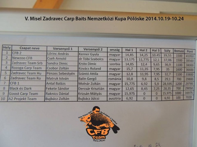 Épp csak hogy kipihentünk ez előző megmérettetés fáradalmait, máris a következő előmunkálataiban találtunk magunkat. A következő próbatétel amit kitűztünk magunk elé az októberi V. Misel Zadravec Carp Baits Nemzetközi Kupa volt Pölöskén, ahol a versenykiírás szerint csak a csapatok három legnagyobb hala számított a végeredménybe. Ez az a rendszer ami egyébként legközelebb áll a szívünkhöz, ezért bár vittünk egy vödör magmixet, de főleg a bojlira helyeztük a hangsúlyt. Talán nem árulok el nagy titkot, ezúttal is Deep Sea World és Red Army mixből készült golyókkal pakoltuk meg a táskákat.