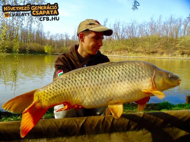 Nagy örömömben, mivel ez a szépség volt az ide év első koi pontya, nem oda tettem vissza a szerelékem ahova eddig, de gondoltam majd csak lesz valami. Akkor még nem tudtam, de a véletlennek köszönhetően rátaláltam egy remek helyre. Fél óra sem telt el, már húzta is a botomat egy vehemens, éhes hal és már kezdődött is a küzdelem. Érdekes, a víz még csak 8 fok tájékán volt, hatalmas erő rejlik minden egyes itt élő példányba.