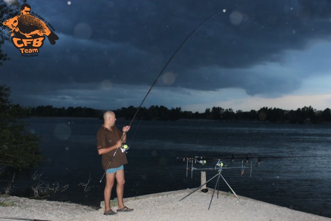 Nagy reményekkel vágtam neki júniusi túrámnak és egész úton azon gondolkodtam hogy vajon hova fogok tudni ülni és az általam készített csalik hogy fognak muzsikálni. A jól bevált CFB Full Liver – Squid-et vittem magammal 15kg-ot a négy napra és CFB Deep Sea World –10kg mennyiségben 18mm legörgetve. Sötétedett mikor a tóhoz értem, iszonyat szúnyoginvázió fogadott. Este 20:00 órakor még mindig 28 C fok volt és hemzsegett az horgász életét megkeserítő mosquito mindenhol. Két óra alatt sikerült az egész tábort felállítani és leadtam legalább 1 litert vért a kis dögöknek. Sötétben még etettem katapultal és mind 3 botra Liver – Squidet raktam. Teljesen eseménytelenül telt az éjszaka, de titkon nem is bántam mert hullafáradt voltam. Reggel a nap sugarai ébresztettek és nekiláttam egy nagyobb alapozó etetésnek.