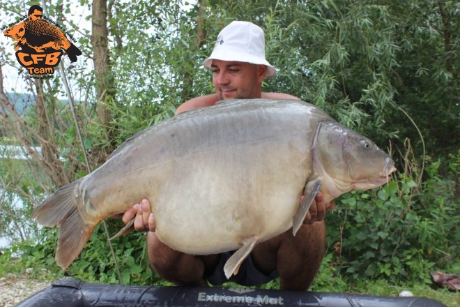 Szokásos rituálé vette kezdetét: etetés, újra csalizás, de a halak nemigen mutatkoztak. Fülledt meleg idő volt és érezni lehetett, hogy a légnyomás sem nekünk kedvez. Még a szúnyogok is előjöttek délelőtt. Dél körül tiszteletét tette egy 9 körüli tükrös, pár közös kép után távozott is. Délután végre jó kapásom volt, amit elég hamar szákba tudtam terelni, mert nemigen védekezett. Őt is tíz körülinek tudtam volna be, de a mérleg 18 kiló felett mutatott.