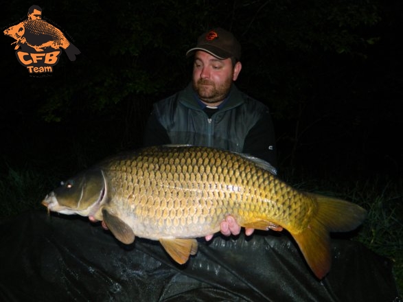 A nap már mélyen a horizont alá bukott, amikor erőteljes kapás jelentkezett megintcsak a bátyámnak. Most a jobb oldali bot zsinórja feszült, Monsterfishel és remélhetőleg egy újabb szépséggel a végén. A forgatókönyv ugyanaz, csónak, huzavona, pörögtünk jobbra, fordultunk balra és biztos voltam abban, hogy méretesebb ponty küzd a mélyben. Így is volt. Már a merítőben tudtam, hogy testesebb példány és láttam a társam szemébe a boldogságot és megkönnyebbülést, ahogy a hálót a csónakhoz húztam. Sötétben mérlegeltünk, majd készítettünk néhány képet erről a gyönyörű erős tövesről.