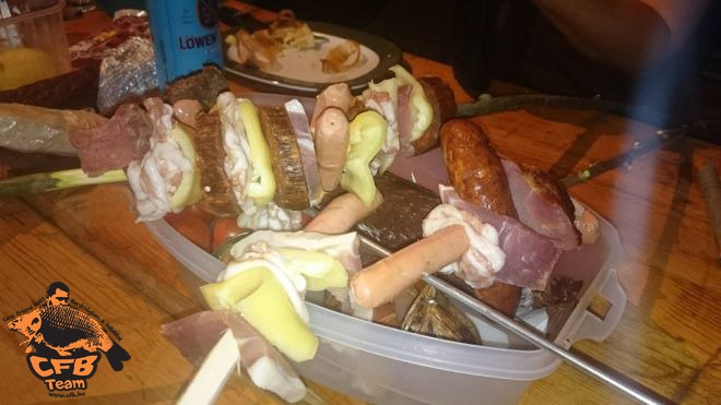 Átlagban 8-12 kg közöttiek jöttek. Másnap végre én is megérkeztem kedvesemmel a vízpartra. Kipakolás és helykeresés után izgatottan vetettem be készségeimet a kiszemelt helyekre. Csalinak természetesen a CFB termékek kaptak főszerepet. Elsősorban a RED ARMY saját gyúrású SQUID LIVER és BLACK JACK bojlik. Fecó barátom szintén e csalikkal próbálkozott. Zoli még nem használta őket,de már kacsingat feléjük. Az etetést nem vittük túlzásba, egy marék pellet és pár szem bojli került a horgok mellé.