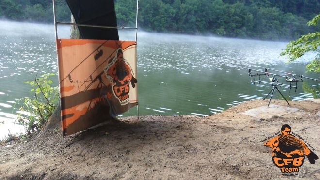 A megérkezésünk pillanatában kissé párás s ködös idő fogadott minket ami a nap folyamán kitisztult kellemes napsütéses nyári nappá vált. A horgászhelyre érkezve felállítottuk a táborunkat, majd egy 100-130méterre csónakba ülve beetettünk a . Három helyen bólyát helyeztünk el, a part szélétől 1 méterre illetve a régi, vízbe dőlt fák közelében.