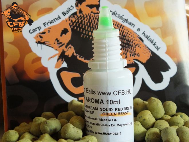 Pár Csepp GREEN BEAST aroma a csalira a kosárba extra ízanyag mely a kosárba lévő anyaggal együtt fog oldódni a fenéken.