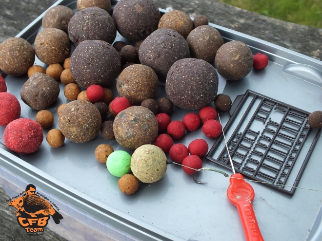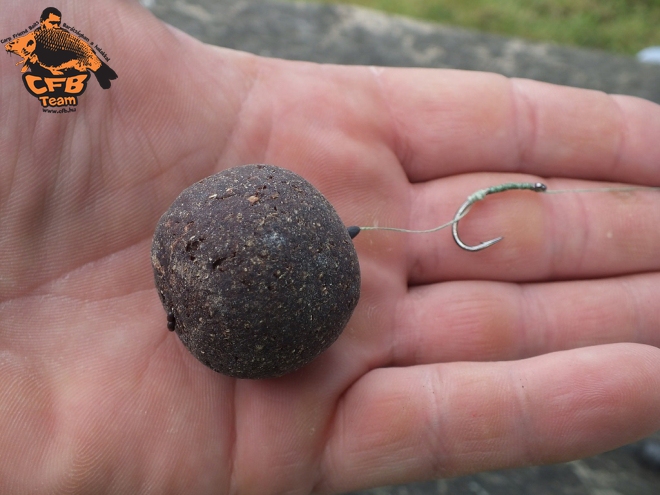 Botjaim közül a két legerősebbet vittem magammal, egy 390-es és egy 420-as extra heavy feeter botot, végszerelékemet sem bonyolítottam túl. Mivel a feeder botokról beszélünk, ezért egy viszonylag kicsi 50 grammos inline bordás ólom került fel a dobóelőke végére, melyhez egy quick chanege gyorskapocshoz egy rövid 10 centis előkére egy 8-as horgot kötöttem. A horogra természetesen, most is CFB termékek kerültek. Azon belül is oldódó és főzött bojlik, valamint fluoro popupok. Bojlikból a kicsi 10-es mérettől egészen a 30-ig.