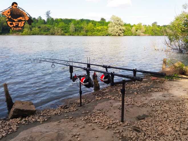 Az újrahúzás és ráetetés után sajnos eseménytelenül telt az egész éjjel, melyben valószínűleg az is közrejátszott, hogy a fentebb említett jómadarak nem dolgozták fel a közlendőmet és ugyanúgy folytatták az evezős csapkodásukat, ráadásul este 11-ig még erdő diszkót is kreáltak nekem és a többi álláson horgászó sporttárs számára. Többen is megszólták őket, aztán valahogy leeshetett nekik, hogy itt ezt nem kéne tovább folytatni. Elég ideges voltam én is, és ahogy kihallottam, a 4-es álláson horgászók is. Az éjjel elmúlt kapástalanul, majd délelőtt úgy döntöttem, hogy a középen elhelyezett bójámnál a hajszálelőkére oldódó CFB Red Army-t rakok, hátha. Az akadós előkén pedig lecseréltem a CFB Deep Sea World-öt egy szem 24 mm CFB River bojlira, amit Csabától kaptam, hogy próbálgassam. A CFB River-t nagyon hamar el is húzta egy újabb szép tükörponty a bokrok alól!
