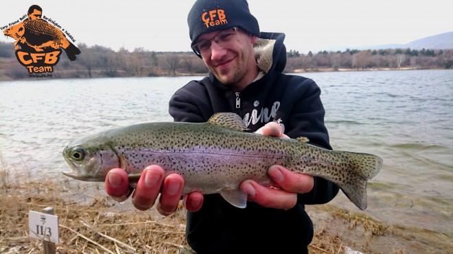 A Március 15-ei ünnep napon, Pál Lajos barátom meghívásának eleget téve ellátogattam a Fenyves tóra. Nappali pár órás dobós horgászatot beszéltünk meg, ezért csalinak a kis méretű Ghost Pop Up-okkal készültem. A mindössze 6 fokos vízben 4 kapásig sikerült eljutnom.Ebből kettő hal meglépett a fák közé az erdőbe, viszont kettőt sikerült elcsípnem egy fotóra. Legnagyobb meglepetésemre közülük az egyik, egy gyönyörű szivárványos pisztráng lett, ami egyben életem első pisztrángja is. Mindkét hal a 14mm-es Cranberry Ghost Pop Up-ra csábult el.