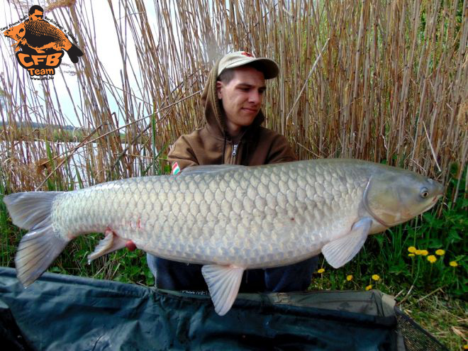 Tíz óra fele pötyögtetős kapásra lettem figyelmes. Ráemeléskor már a megakasztás helyén éreztem, hogy egy szép torpedó küzd a horgomon. Szépen húzatta magát a mederig, de mivel a tímári ágba meder átalakítás történt ez a halam be is ment az akadóba. Édesapám a hátam mögött már jelezte, hogy ennek annyi. Meglazítottam a damilom és vártam egy pár percet. A damil ismét megfeszült, kiszabadult az akadó fogságából a szerelékem, így újra felvehettem a hallal a küzdelmet. Part előtt megpillantottam hatalmas, széles torpedó jellegű hátát és láttam, hogy egy igen szép példánnyal hozott össze a sors. Laci bácsi, a halőr pont akkor járt arra és mérlegeléskor ő sem gondolta volna, hogy már ilyen szépen benőttek az amurok. Elmondása alapján ez az eddigi legnagyobb, amit ő is látott a tóban.