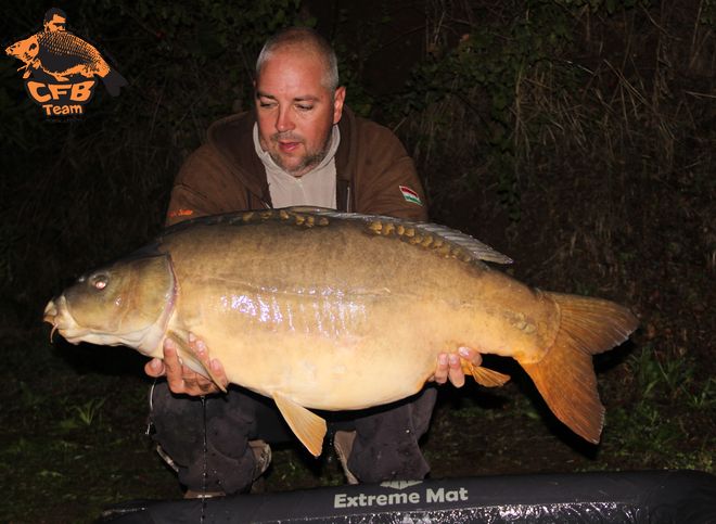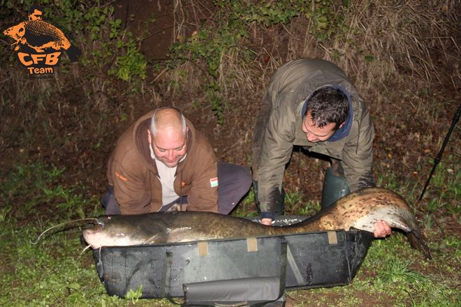 A hal elúszott épségben, a tógazdától megtudtuk hogy tórekord harcsát sikerült fognunk. Azt a botot amelyiken kapás volt megemeltem és láttam hogy a hal elvitte jobbra de van rajta valami. Kis huzavona után megszákolva a 24kg-os ponty. Nem hittünk a szemünkek. Amint a harcsák elhagyták az etetést a békés halak is rámerészkedtek a maradékra.
