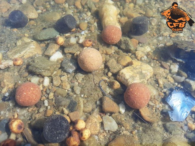 Gyors szomszédolás következett,infó szerzés miatt,ahol kiderült,hogy két napja nagyon megállt a halfogás,ezért a minimális etetés mellett döntöttem.Ez úgy nézett ki,hogy 1 szem 24 mm Robin Red bojli került a hajszálelőkére,mellé még 5 szem az etető hajóba,5 szem halibut pellet és egy marék tigrismogyoróval együtt.