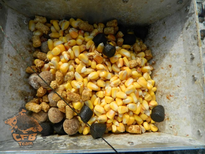 Az etetőhajóba minimális mennyiségű körülbelül 10-15 dekagramm magot raktam, amihez a csalogató hatás fokozása végett édes-gyümölcsös pellet aromába áztatott, rendkívül gyorsan oldódó CSL kukoricapelletet is adtam.